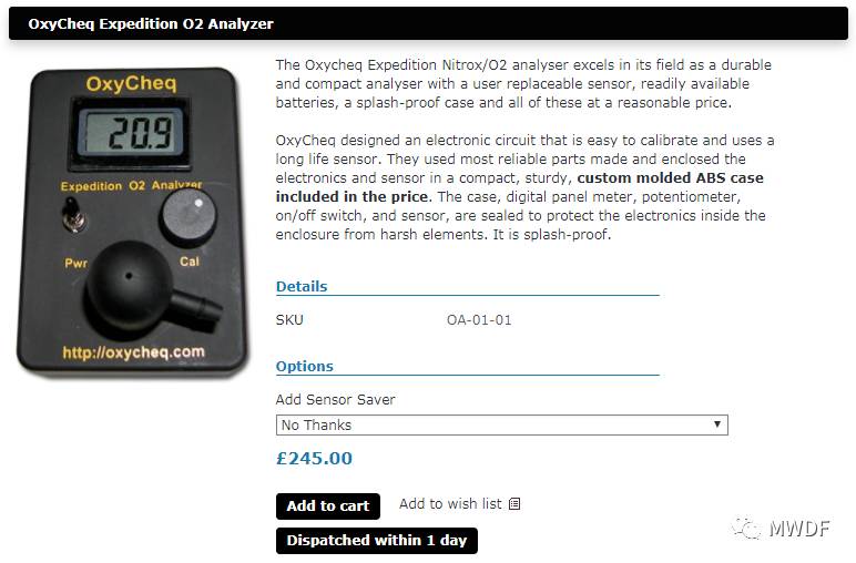 - DE-OX EXPLORER这个有点牛逼,可以测4种气体,除了氧氦氮之外还有气体可以自选。根据选择的第四种气体价格也完全不同。